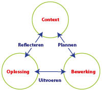 Dit model laat zien wat er gebeurt tijdens het oplossen van van een ‘probleem’. Dat kan een rekencontext zijn, maar ook elk ander probleem dat we in ons dagelijks leven tegenkomen.